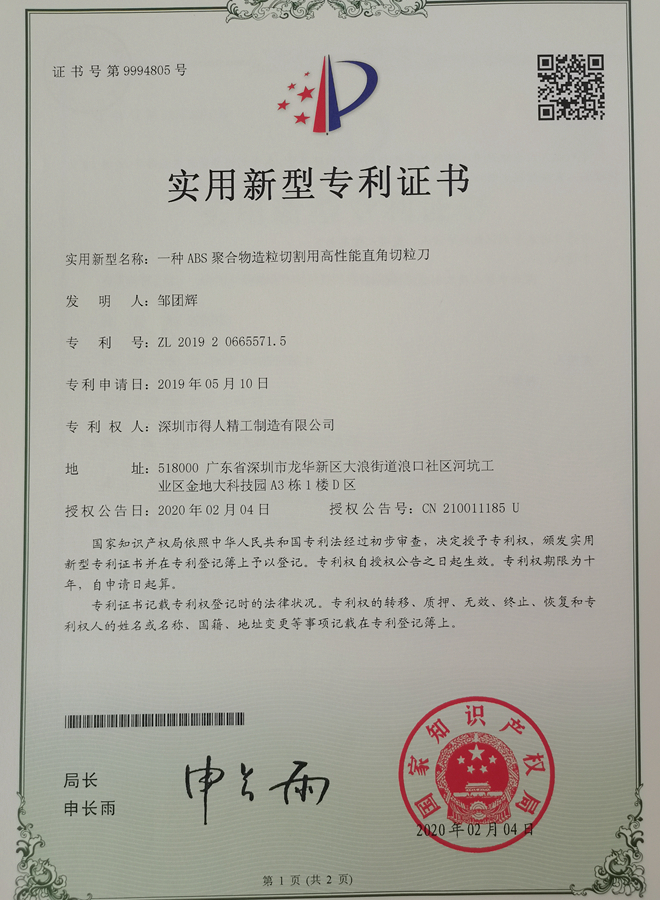 直角切粒刀片专利
