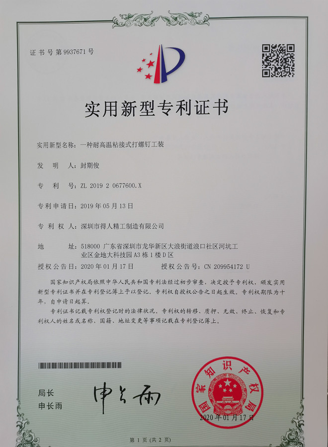 得人精工打螺钉工装专利